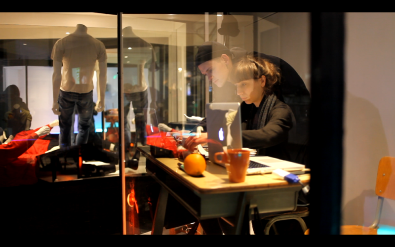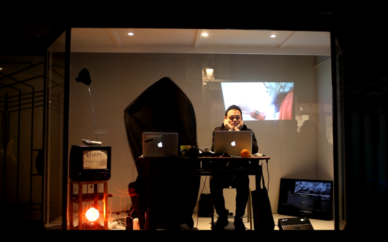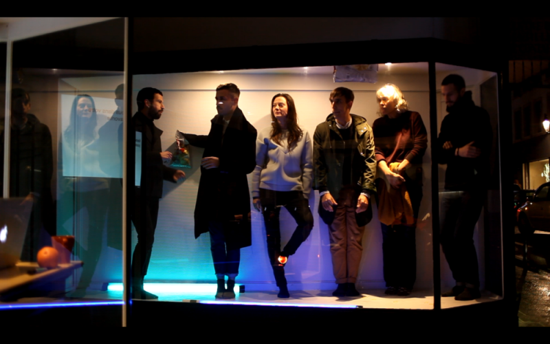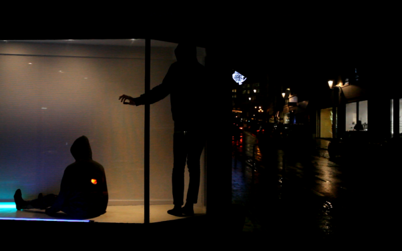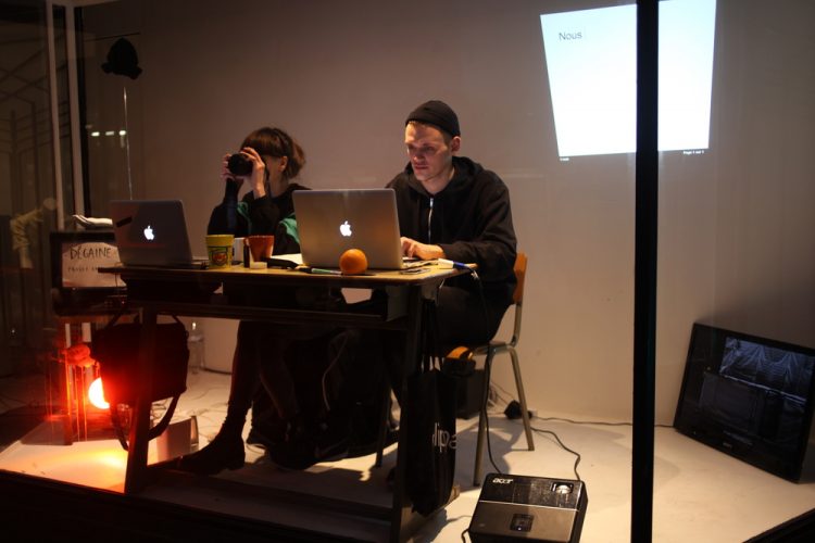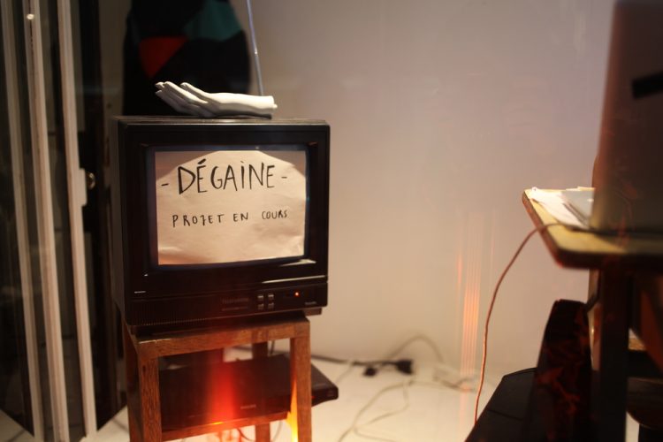 Concept development and collaboration between Marion Menan and Victor Dumont; artists and dancers living and working in Brussels. For each stage of the project DÉGAINE they occupy window spaces as their working arena. Used as studio, workshop, exhibition and living space, this set-up allows for visibility and continuous dialogue with the exterior.