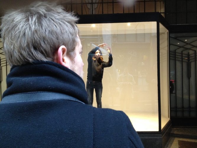 FAÏENCE is a project born out of interest in the notions of “non-verbal communications” and “proxemics'” terminology of psychological and ethnological origin. An estimated 55% of communication is through body language, which in turn is greatly influenced by placement in shared space. What then happens when we attempt, in silence and divided by glass, to create a new form of exchange, new codes? To create a game without rules, without prerequisites? What emotions are present that do not need words or gestures? How do they manifest? Do pre-signs exist that can be understood despite culture or habit? During this residency it is the space “in-between” that will be in question; this mysterious place, fragile, heavy of countless information. It all starts with two performers in stand-off...