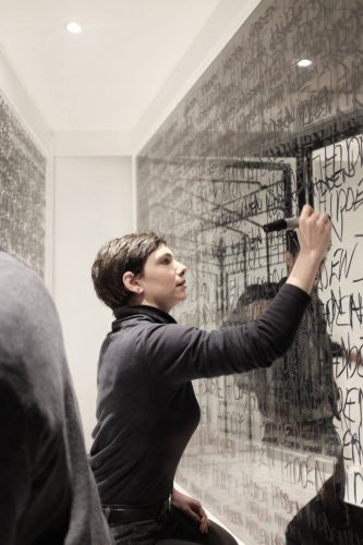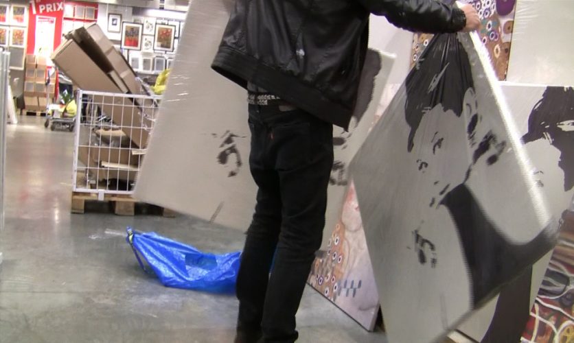 IKEA, is a video redrawing all the stages of an intervention which consists in reproducing Audrey Hepburn’s picture sold massively in this big brand store. Reproduced in oil and reintroduced it into the store IKEA."