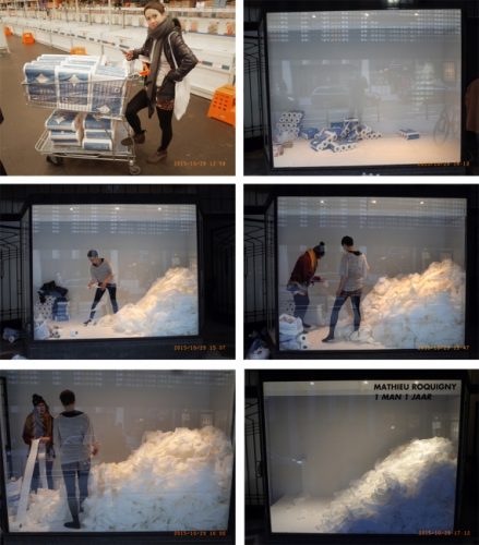 Mathieu Roquigny observes his environment within the principle of equality; everything being evenly beautiful, serious and true. Fascinated by social norms Mathieu categorises the everyday attempting to understand modern man’s navigation through life. 1 Man 1 Jaar refers to our fascination with statistics as we obsessively measure our daily, weekly & yearly consumption. What are the repercussions of this? Wasted time? Wasted paper? One man's waste, one year...